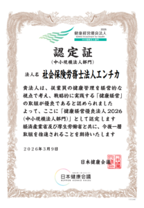 社会保険労務士法人エンチカが、健康経営優良法人2026(中小規模法人部門)に認定されました。